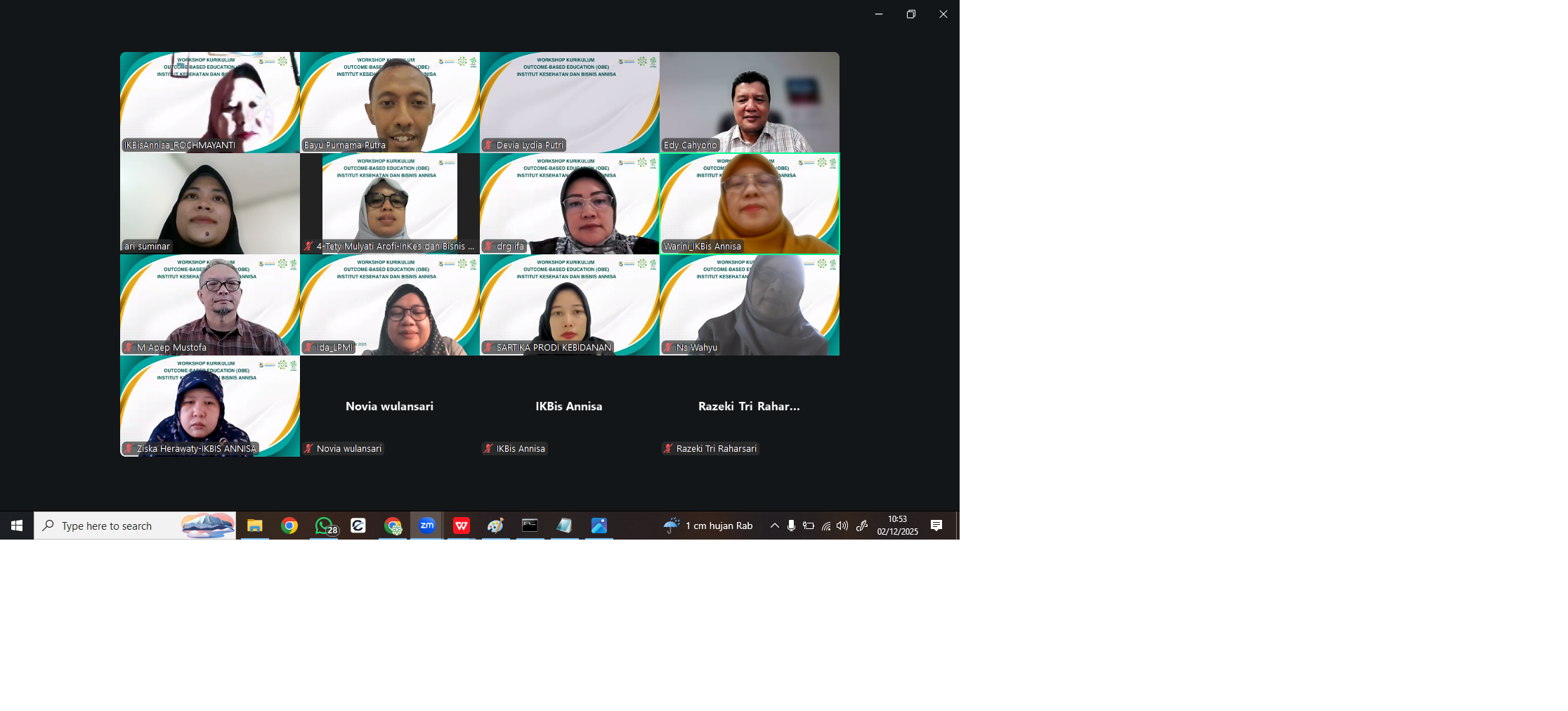 RUMPIKOTA – Institut Kesehatan dan Bisnis (IKBIS) Annisa terus menunjukkan komitmennya dalam meningkatkan mutu pendidikan tinggi melalui penyelenggaraan Workshop Kurikulum Outcome Based Education (OBE) dengan topik “Implementasi Kurikulum KKNI Menuju Kurikulum OBE”. Kegiatan ini dilaksanakan secara daring dalam dua pertemuan, yaitu pada 2 Desember 2025 dan 16 Desember 2025.